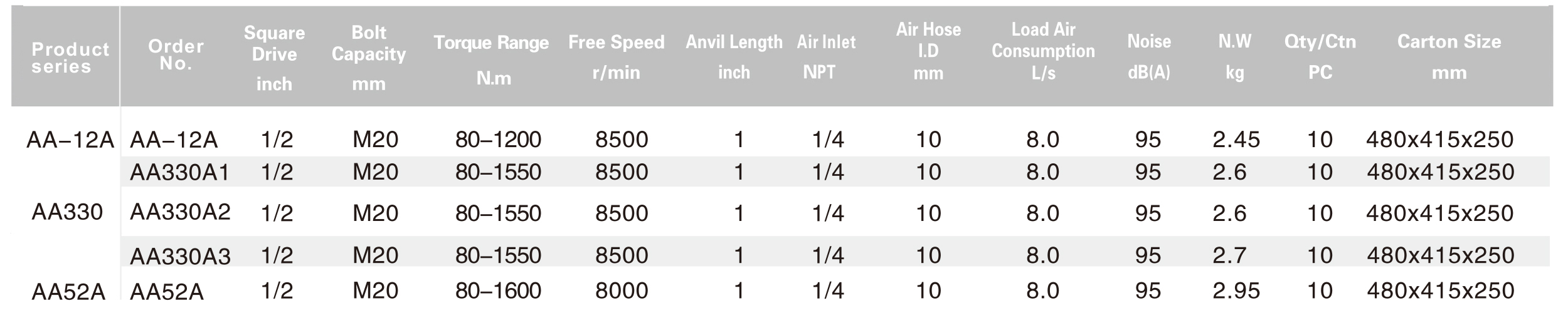 Repair grade 1/2" aluminium impact wrench